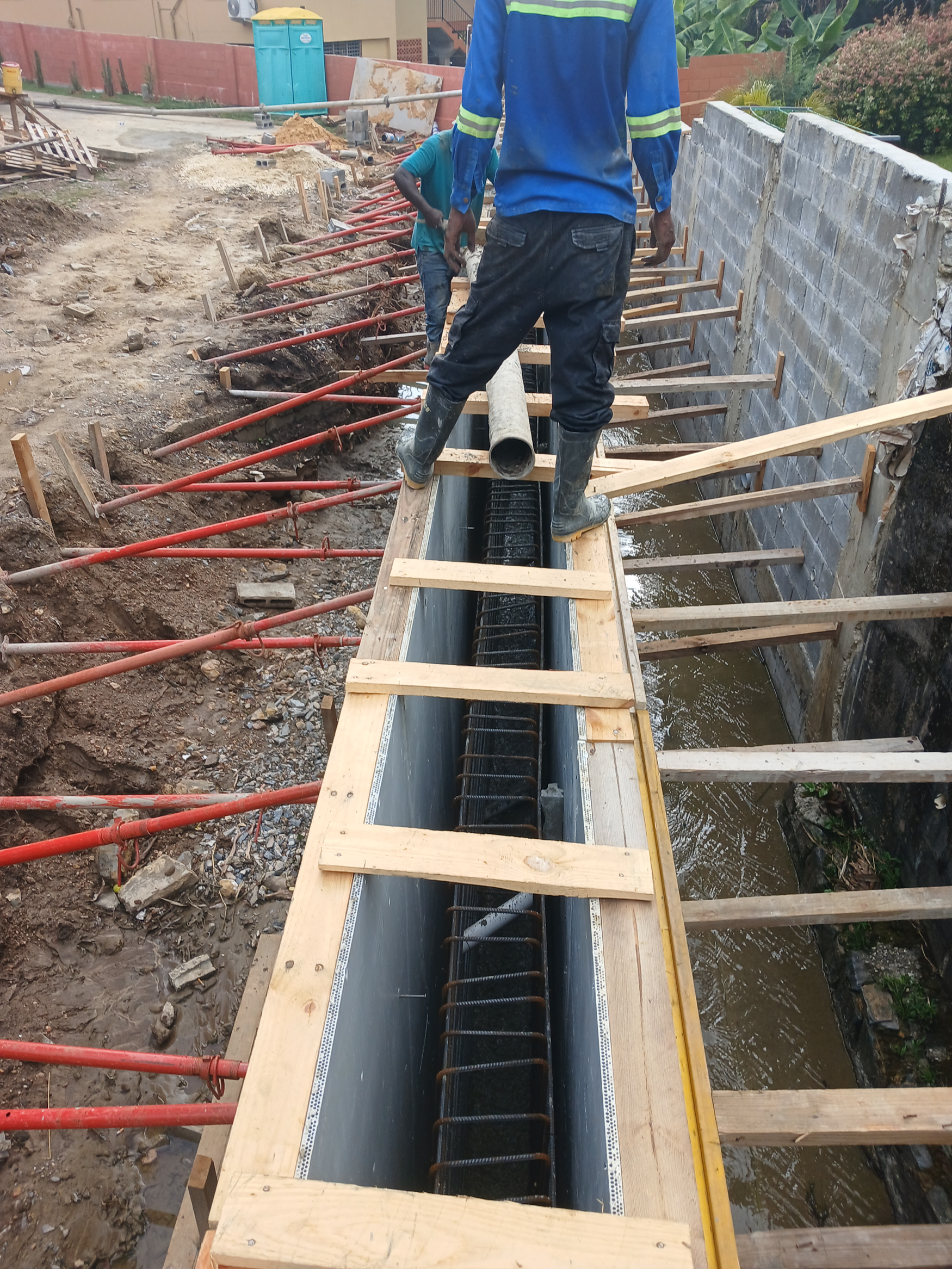 Construction of box drains and slipper drains to efficiently manage water flow and prevent flooding.